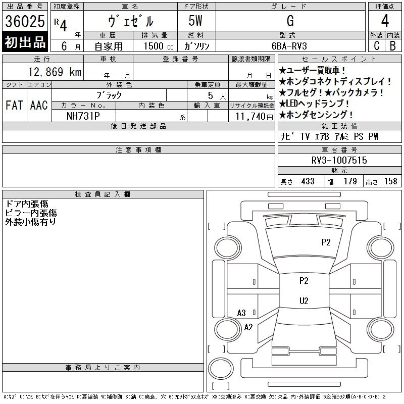 HONDA VEZEL 2022 г., лот № 36025