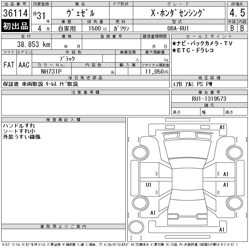 | X HONDA SENSING | DBA-RU1 | L15B | FF | CVT | 1496cc | 131ps(96kW)/6600rpm | AИ-92 | 2 205 093 | |