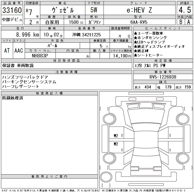 HONDA VEZEL 2025 г., лот № 33160