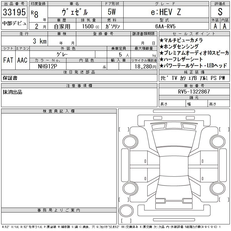 HONDA VEZEL 2026 г., лот № 33195