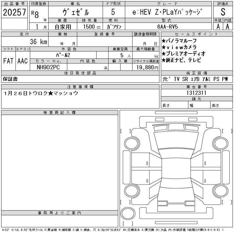 HONDA VEZEL 2026 г., лот № 20257