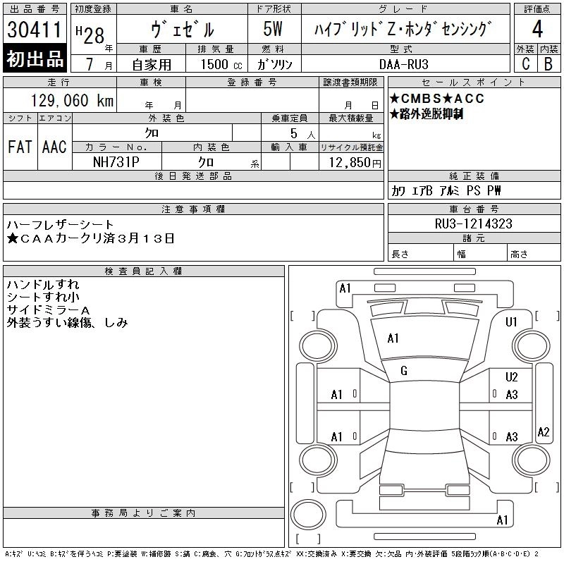 | HYBRID Z HONDA SENSING | DAA-RU3 | LEB | FF | 7AT | 1496cc | 132ps(97kW)/6600rpm | AИ-92 | 2 670 000 | |