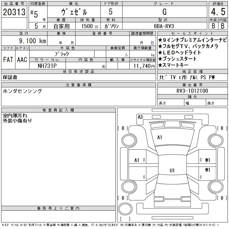 HONDA VEZEL 2023 г., лот № 20313