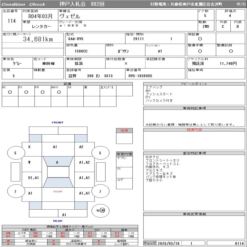 HONDA VEZEL 2022 г., лот № 114