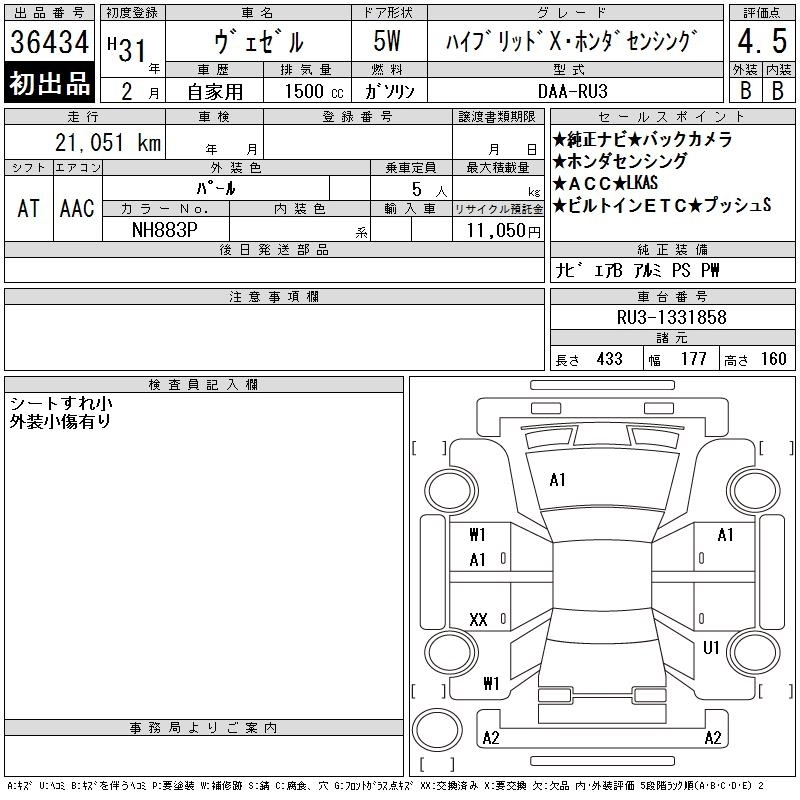 | X HONDA SENSING | DBA-RU1 | L15B | FF | CVT | 1496cc | 131ps(96kW)/6600rpm | AИ-92 | 2 205 093 | |