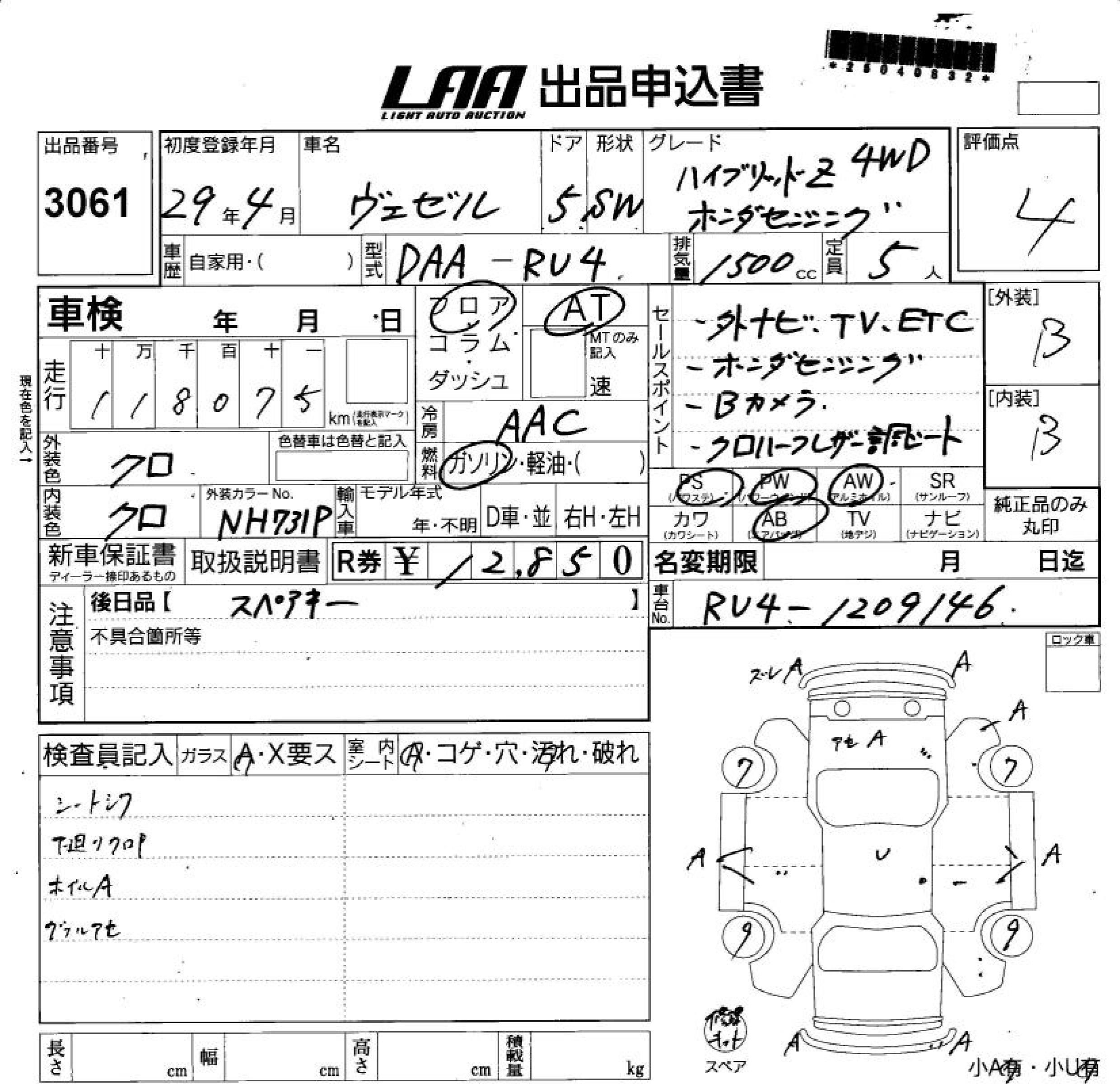 | SPECIAL EDITION HYBRID X HONDA SENSING BRILLIANT STYLE EDITION | DAA-RU3 | LEB | FF | 7AT | 1496cc | 132ps(97kW)/6600rpm | AИ-92 | 2 565 000 |