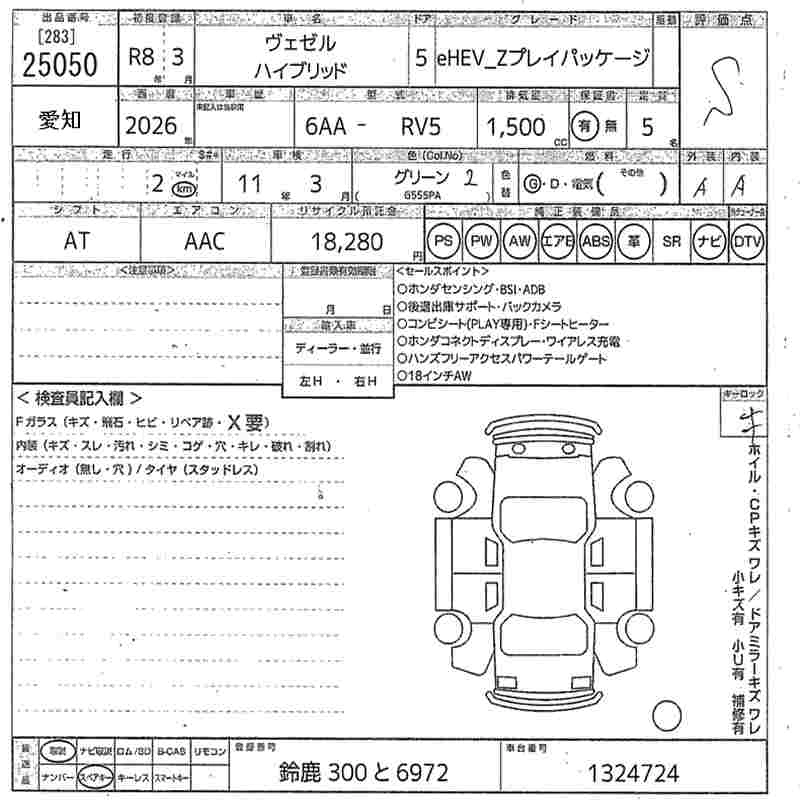 HONDA VEZEL 2026 г., лот № 25050