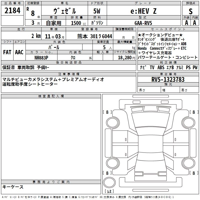 HONDA VEZEL 2026 г., лот № 2184