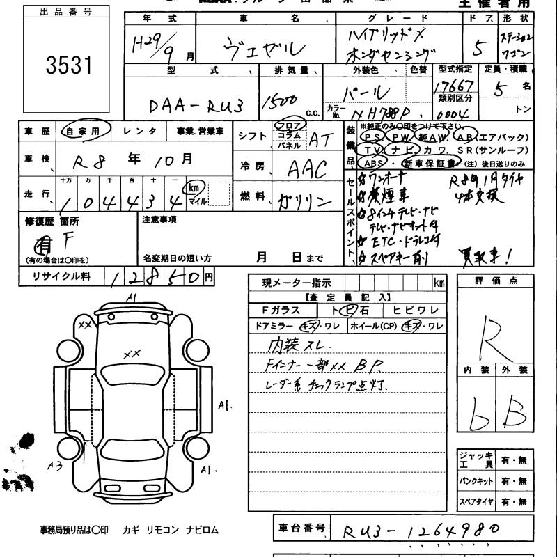 | SPECIAL EDITION HYBRID X HONDA SENSING BRILLIANT STYLE EDITION | DAA-RU3 | LEB | FF | 7AT | 1496cc | 132ps(97kW)/6600rpm | AИ-92 | 2 565 000 |