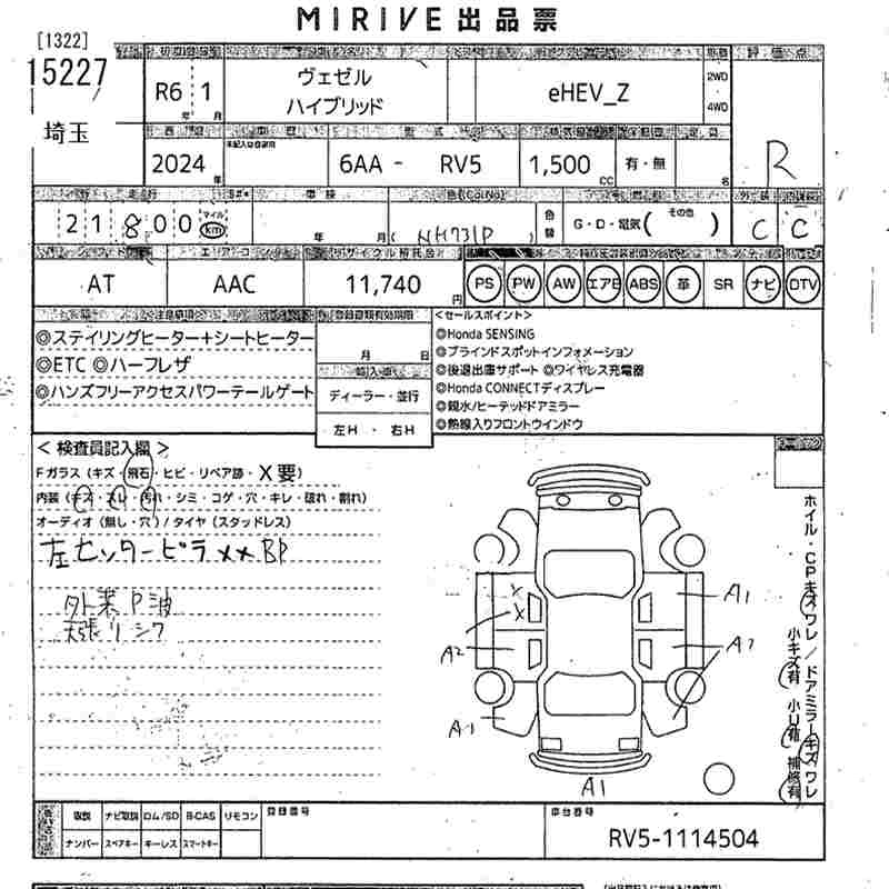 HONDA VEZEL 2024 г., лот № 15227