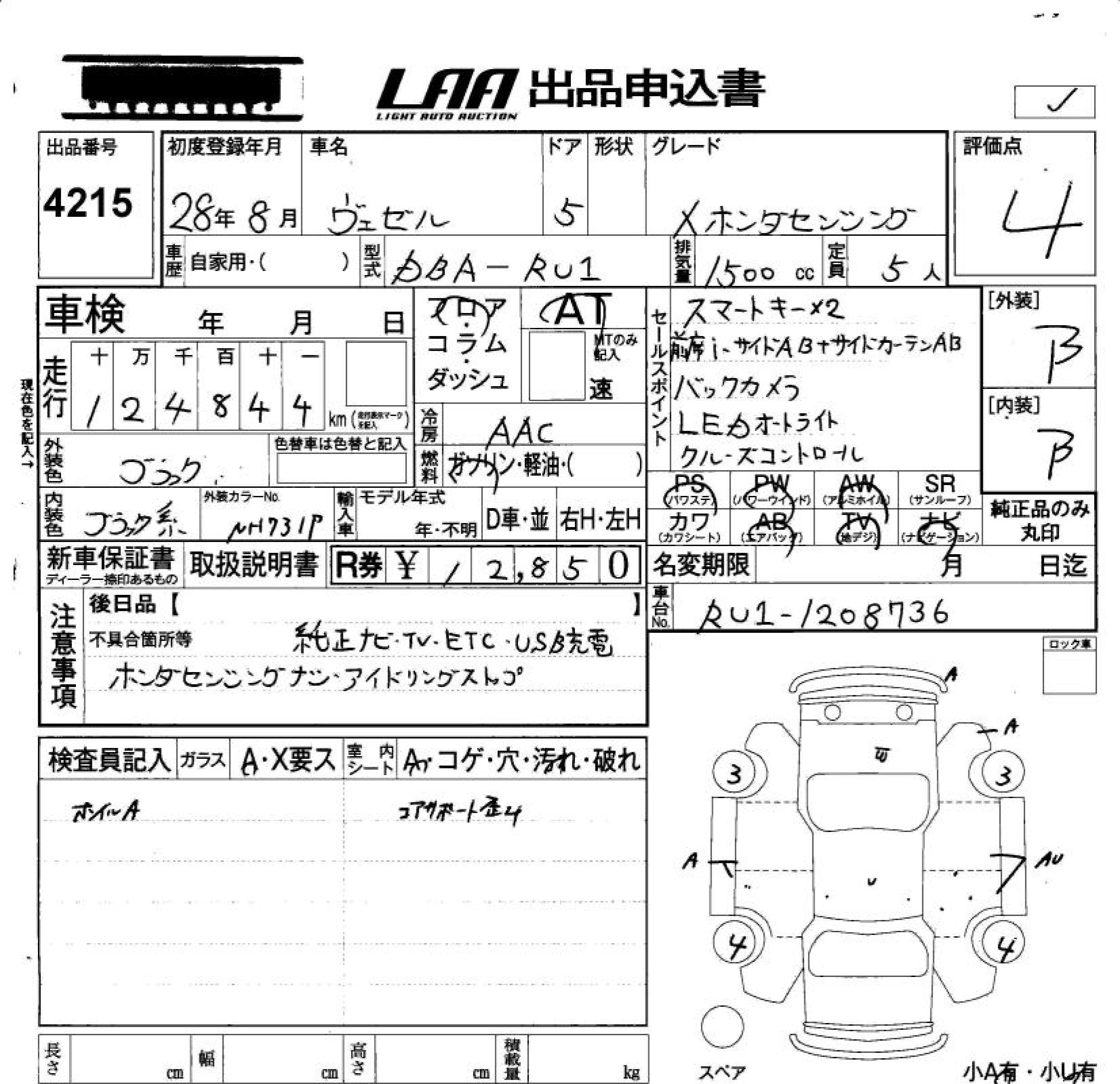 HONDA VEZEL 2016 г., лот № 4215