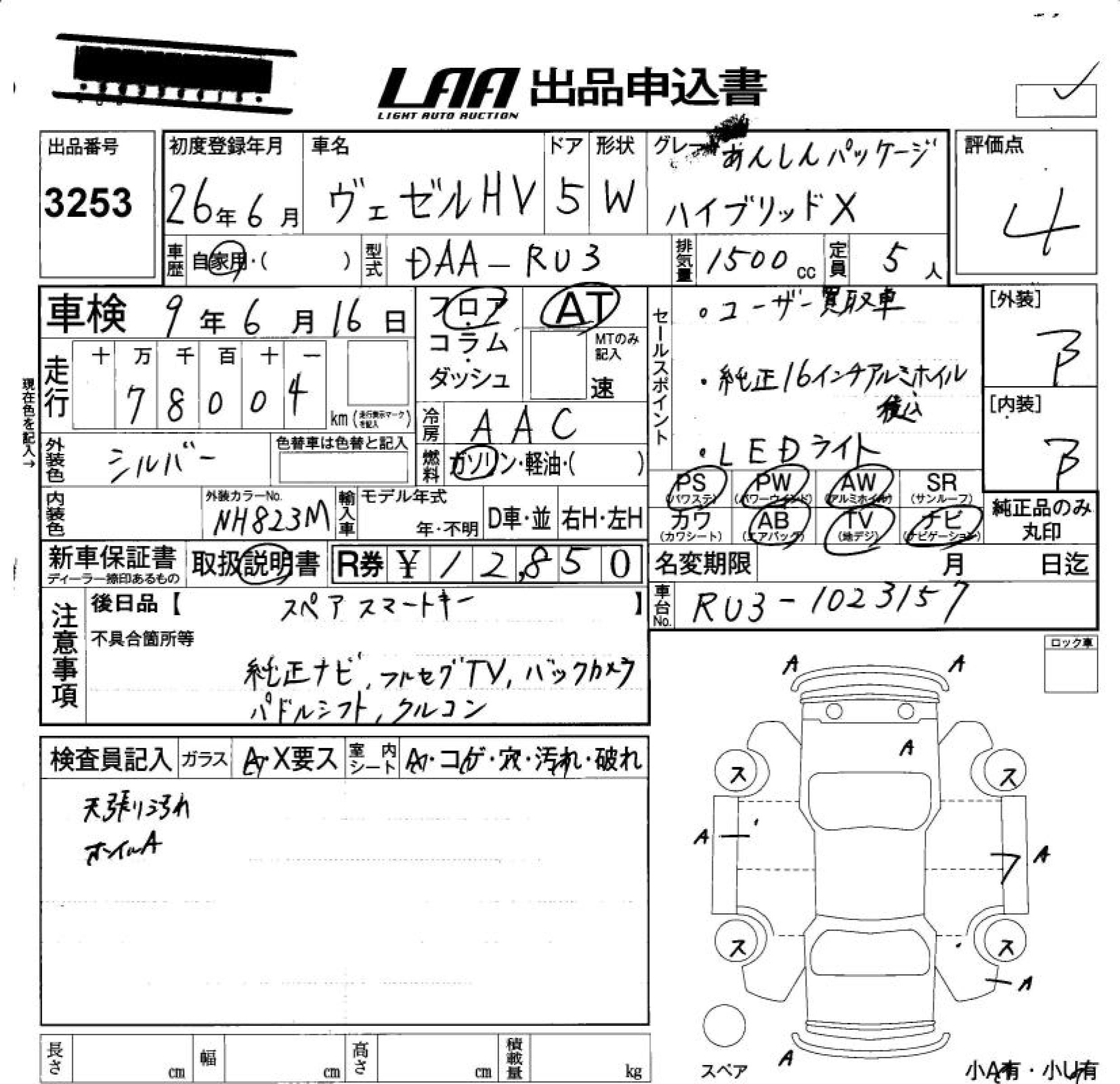| HYBRID | DAA-RU4 | LEB | Full-time 4WD | 7AT | 1496cc | 132ps(97kW)/6600rpm | AИ-92 | 2 468 572 | |