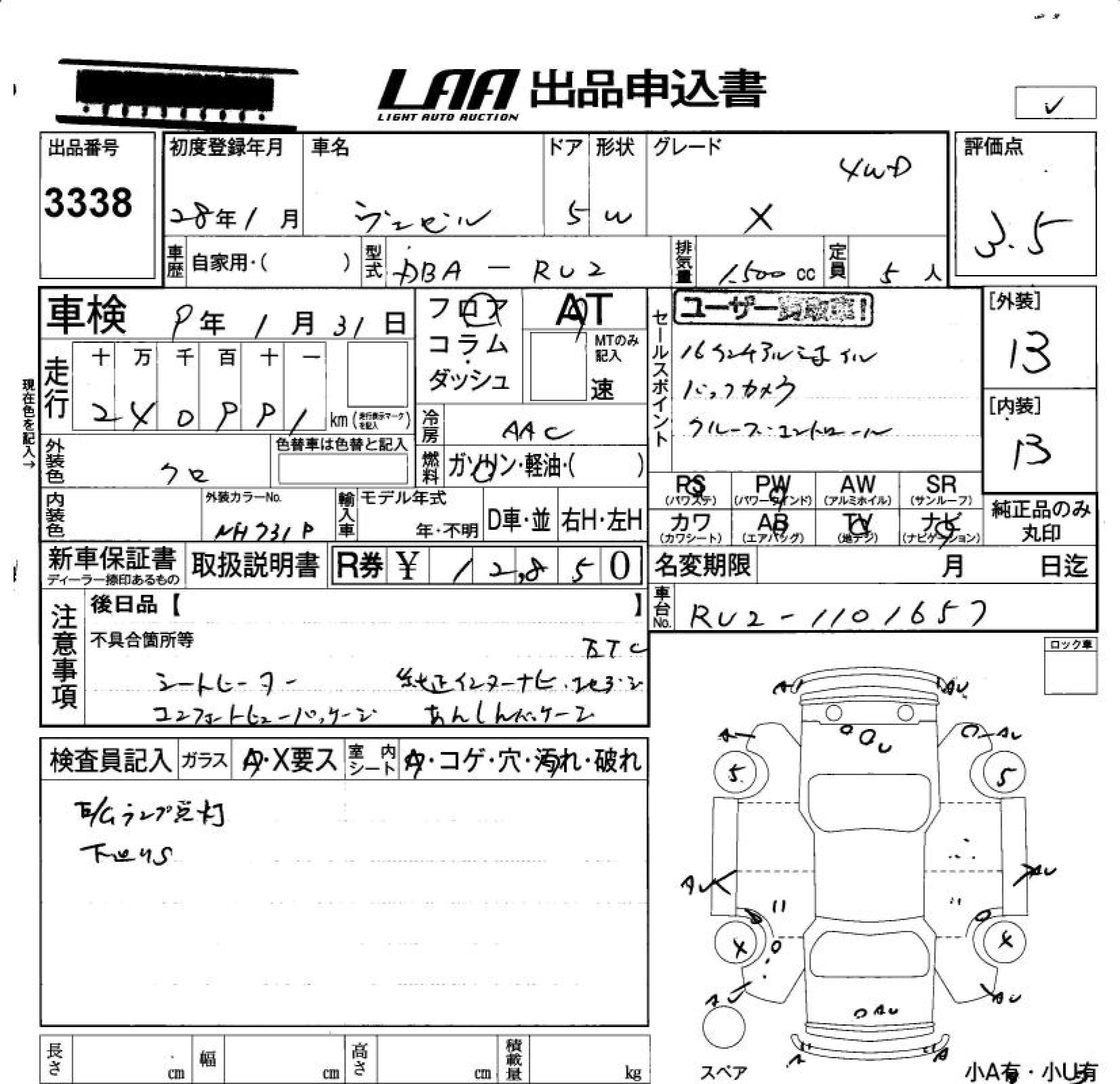 | HYBRID | DAA-RU3 | LEB | FF | 7AT | 1496cc | 132ps(97kW)/6600rpm | AИ-92 | 2 270 000 | |