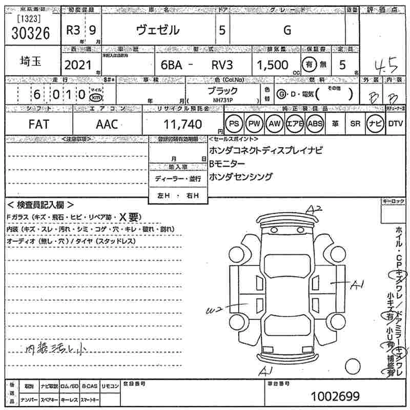 HONDA VEZEL 2021 г., лот № 30326