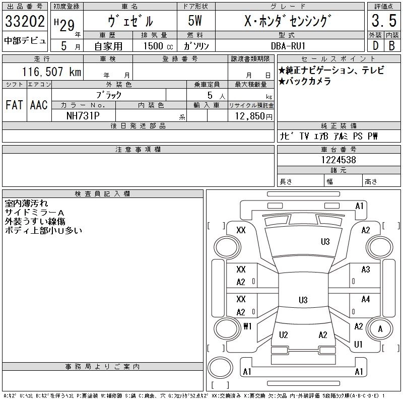 | SPECIAL EDITION HYBRID X HONDA SENSING BRILLIANT STYLE EDITION | DAA-RU3 | LEB | FF | 7AT | 1496cc | 132ps(97kW)/6600rpm | AИ-92 | 2 565 000 |