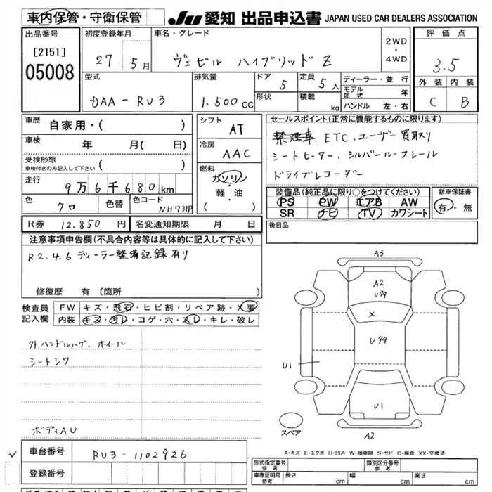 | HYBRID | DAA-RU3 | LEB | FF | 7AT | 1496cc | 132ps(97kW)/6600rpm | AИ-92 | 2 260 000 | |