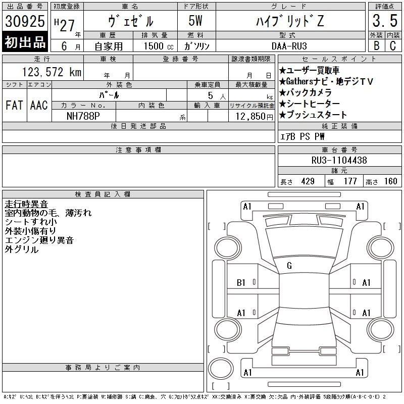 | HYBRID Z STYLE EDITION | DAA-RU3 | LEB | FF | 7AT | 1496cc | 132ps(97kW)/6600rpm | AИ-92 | 2 590 000 |