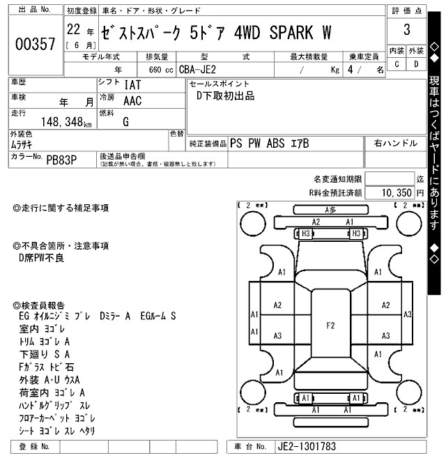 Статус выставлен на аукцион Лот 357 Аукцион ARAI Oyama Дата аукциона 29.01.2026