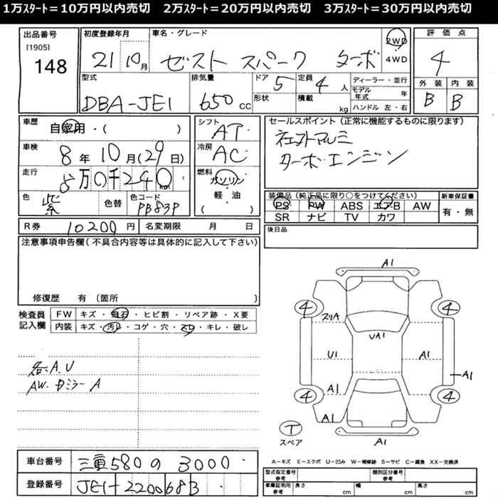W CBA-JE2 P07A Full-time 4WD 4AT 658cc 52ps(38kW)/6700rpm AИ-92 1 470 000