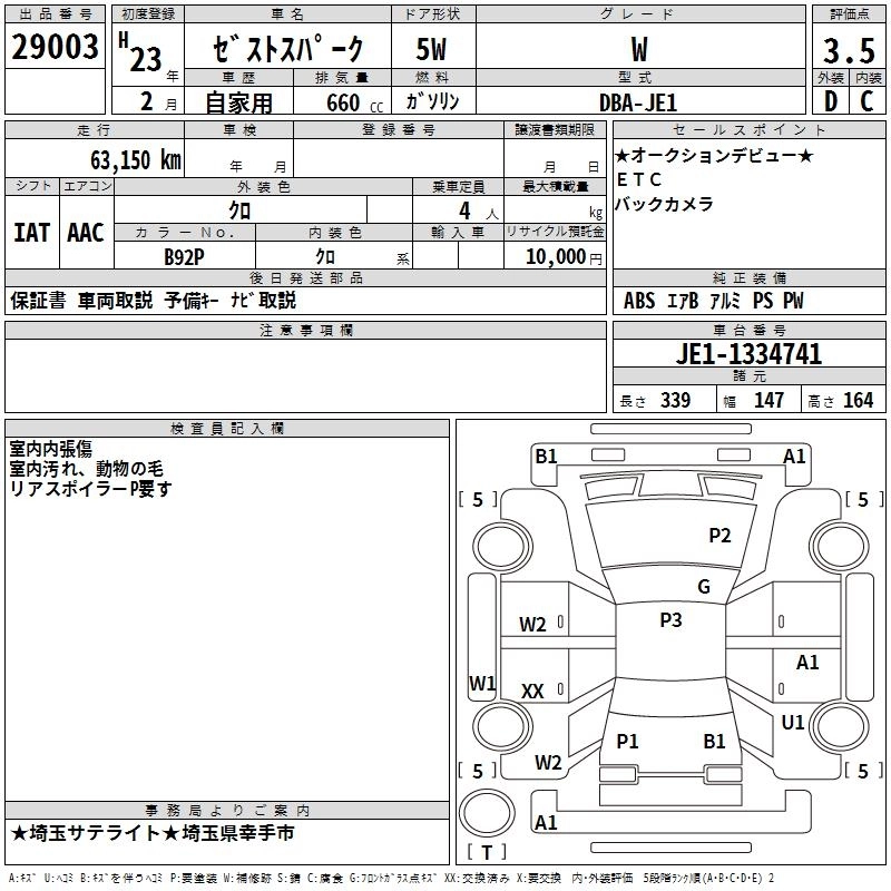 | W | DBA-JE1 | P07A | FF | 4AT | 658cc | 52ps(38kW)/6700rpm | AИ-92 | 1 339 000 | |