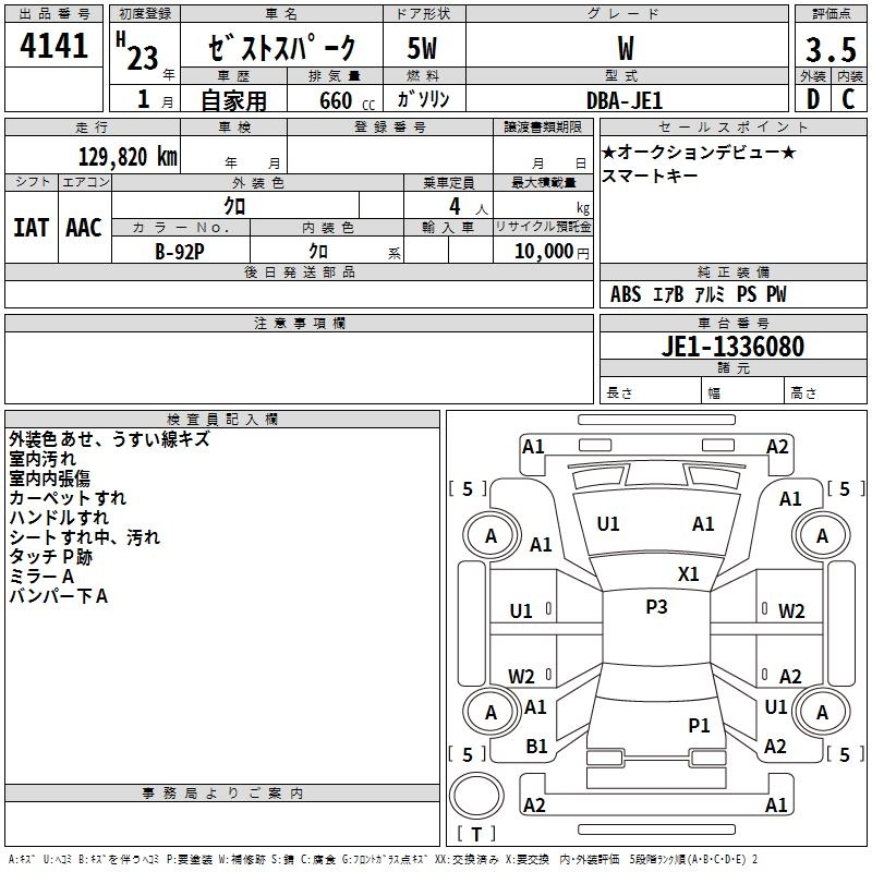 HONDA ZEST SPARK 2011 г., лот № 4141