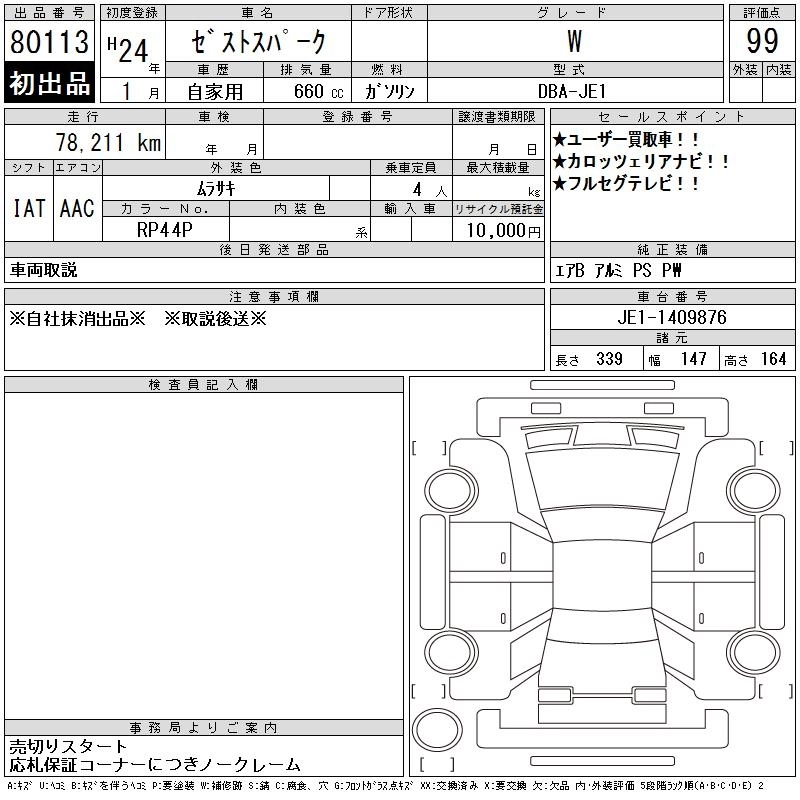 Год выпуска2012 Пробег 78 000 км КузовJE1 КомплектацияW