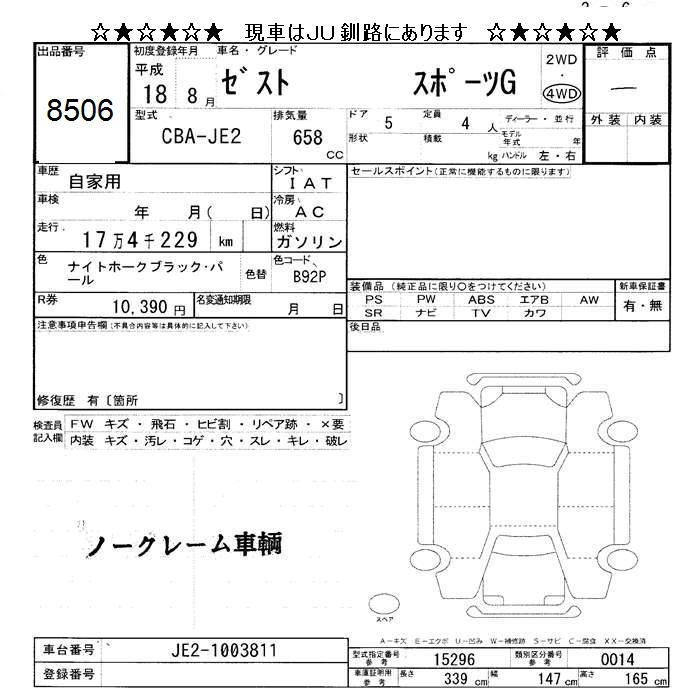 | SPORTS W | CBA-JE2 | P07A | Full-time 4WD | 4AT | 658cc | 52ps(38kW)/6700rpm | AИ-92 | 1 417 500 | |