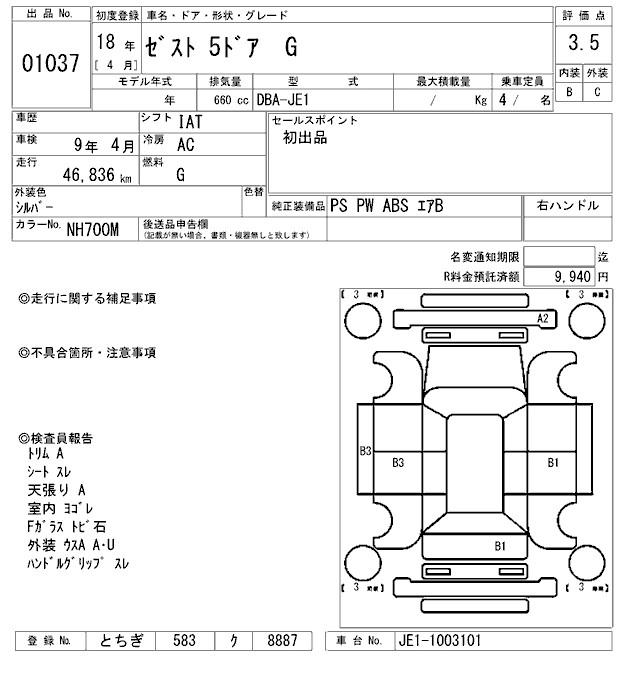 | SPORTS G | CBA-JE2 | P07A | Full-time 4WD | 4AT | 658cc | 52ps(38kW)/6700rpm | AИ-92 | 1 312 500 | |