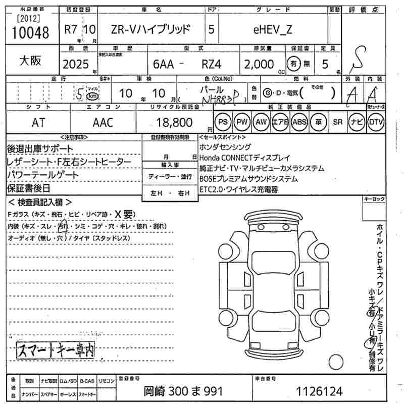 HONDA ZR-V 2025 г., лот № 10048