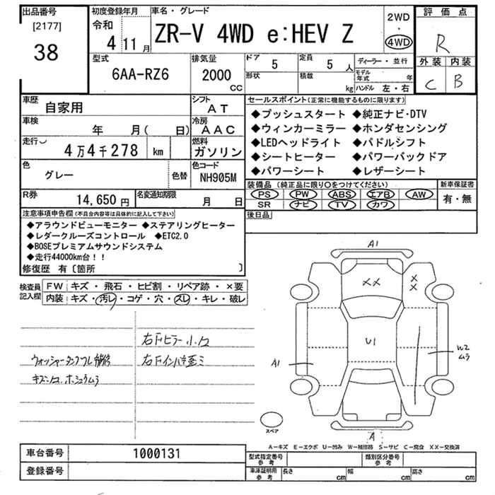 HONDA ZR-V 2022 г., лот № 38