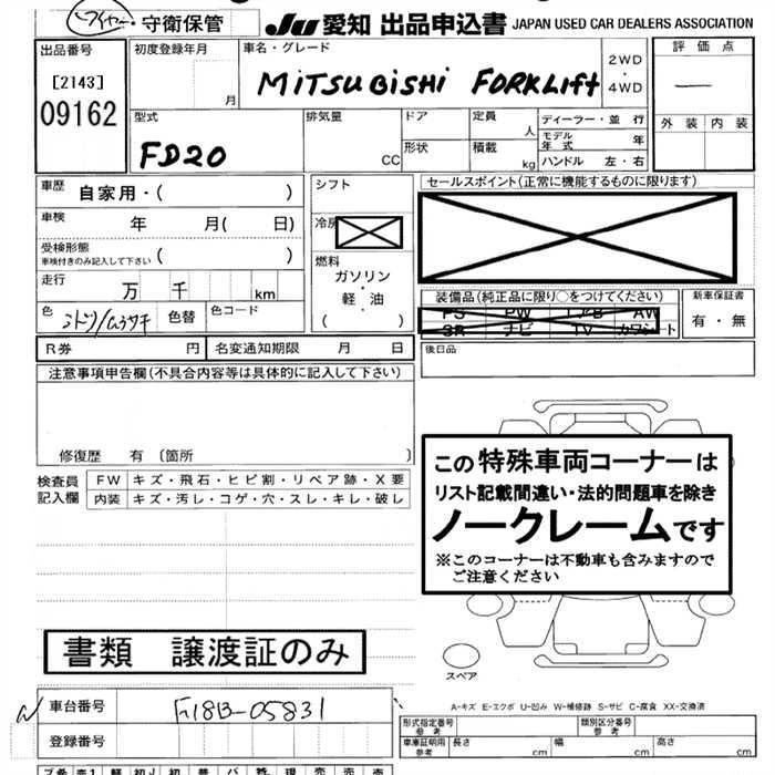 Статус выставлен на аукцион Лот 9162 Аукцион JU Aichi Дата аукциона 29.01.2026