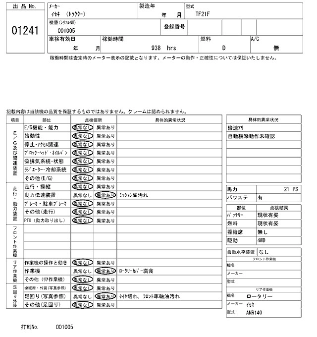 Статус выставлен на аукцион Лот 1241 Аукцион ARAI Kenki Дата аукциона 17.03.2026