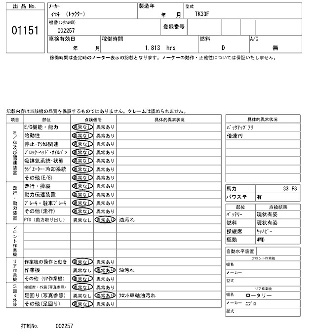 Статус выставлен на аукцион Лот 1151 Аукцион ARAI Kenki Дата аукциона 17.03.2026