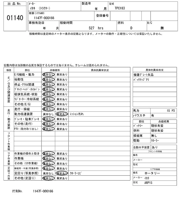 Статус выставлен на аукцион Лот 1140 Аукцион ARAI Kenki Дата аукциона 17.03.2026