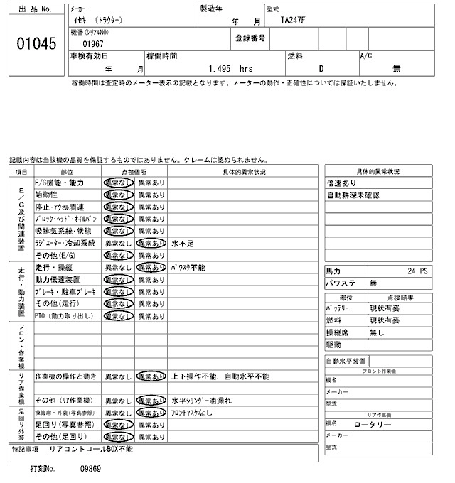 Статус выставлен на аукцион Лот 1045 Аукцион ARAI Kenki Дата аукциона 17.03.2026