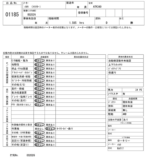 Статус выставлен на аукцион Лот 1185 Аукцион ARAI Kenki Дата аукциона 17.03.2026