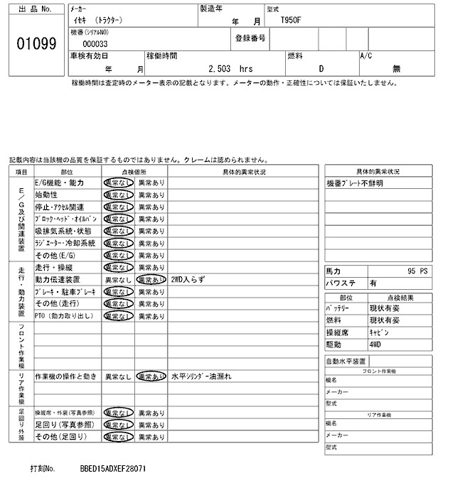 Статус выставлен на аукцион Лот 1099 Аукцион ARAI Kenki Дата аукциона 17.03.2026