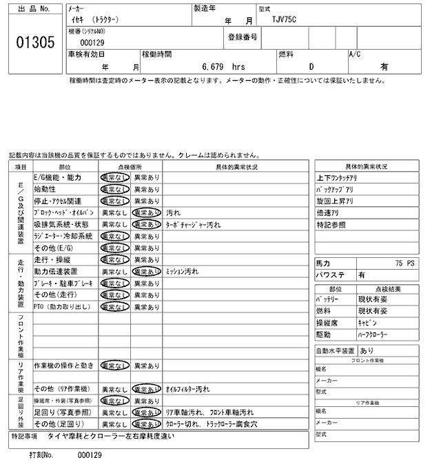 Статус выставлен на аукцион Лот 1305 Аукцион ARAI Kenki Дата аукциона 17.03.2026