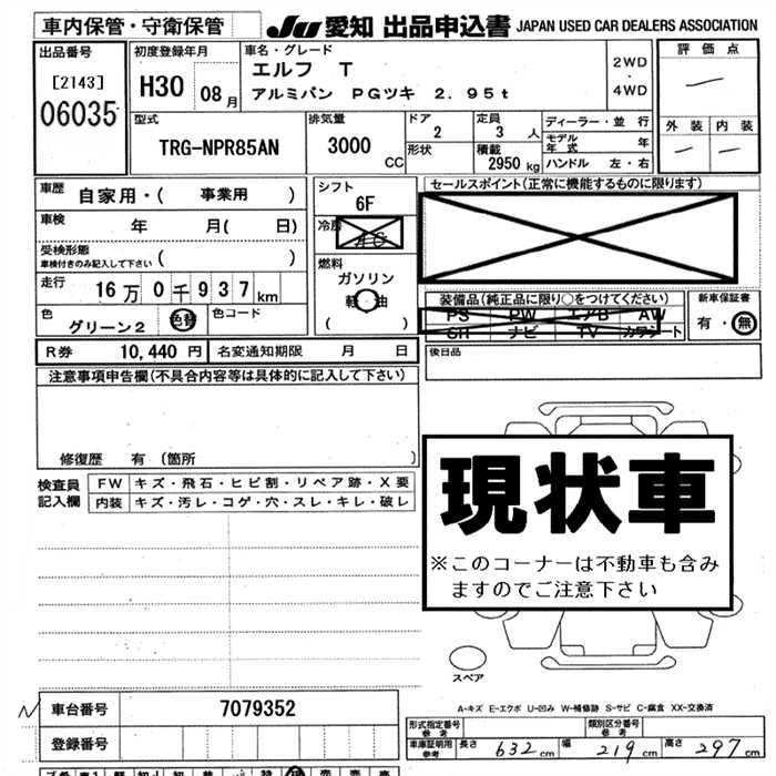 Статус выставлен на аукцион Лот 6035 Аукцион JU Aichi Дата аукциона 29.01.2026