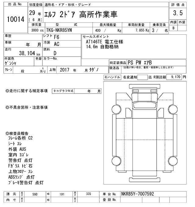 Год выпуска2017 Пробег 38 000 км КузовNKR85YN Комплектация HIGH PLACE WORK