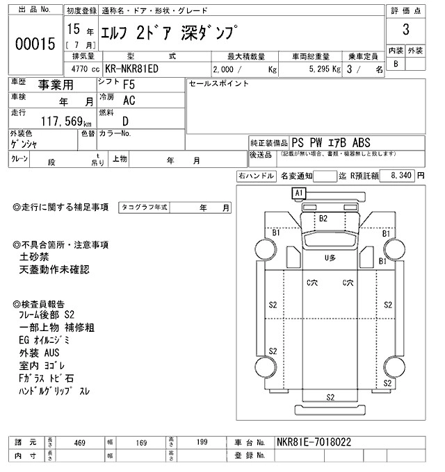Год выпуска2003 Пробег 118 000 км КузовNKR81ED Комплектация DUMP