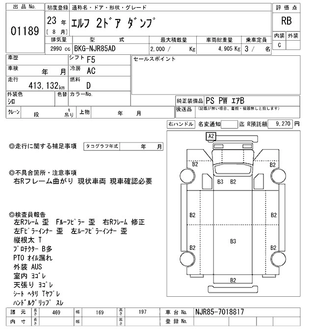 Год выпуска2011 Пробег 413 000 км КузовNJR85AD Комплектация DUMP