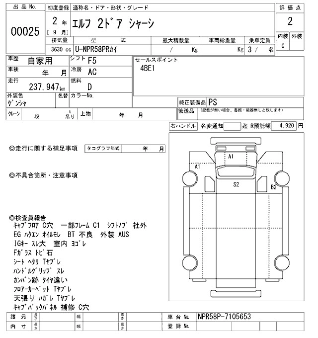 Год выпуска1990 Пробег 238 000 км КузовNPR58PR Комплектация CHASSIS
