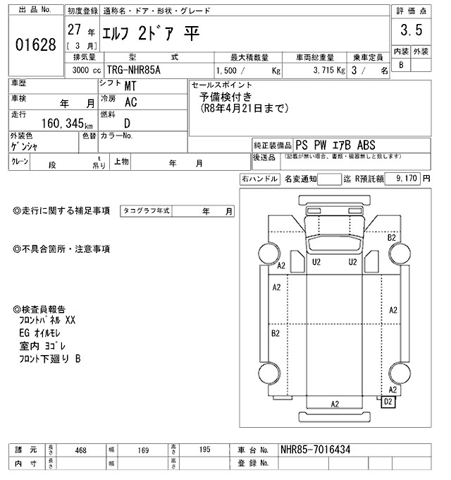 Статус выставлен на аукцион Лот 1628 Аукцион ARAI Oyama VT Дата аукциона 31.01.2026