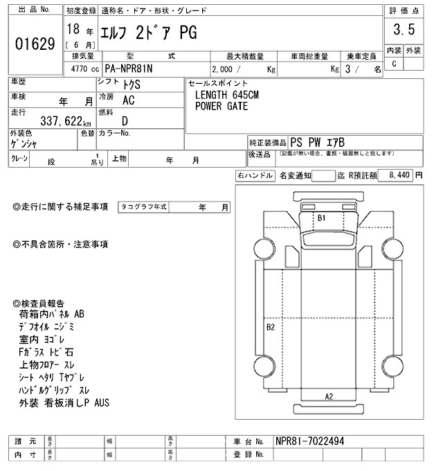 Год выпуска2006 Пробег 338 000 км КузовNPR81N КомплектацияPG