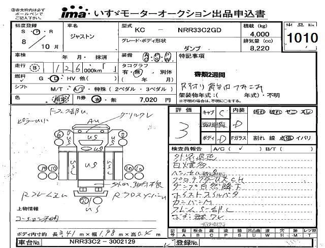 Статус выставлен на аукцион Лот 1010 Аукцион Isuzu Kyushu Дата аукциона 29.01.2026