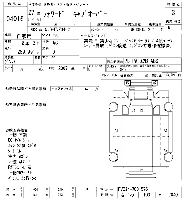 Год выпуска2015 Пробег 270 000 км КузовFVZ34U2 Комплектация COMMON. SELF CRANE 4 -STEP