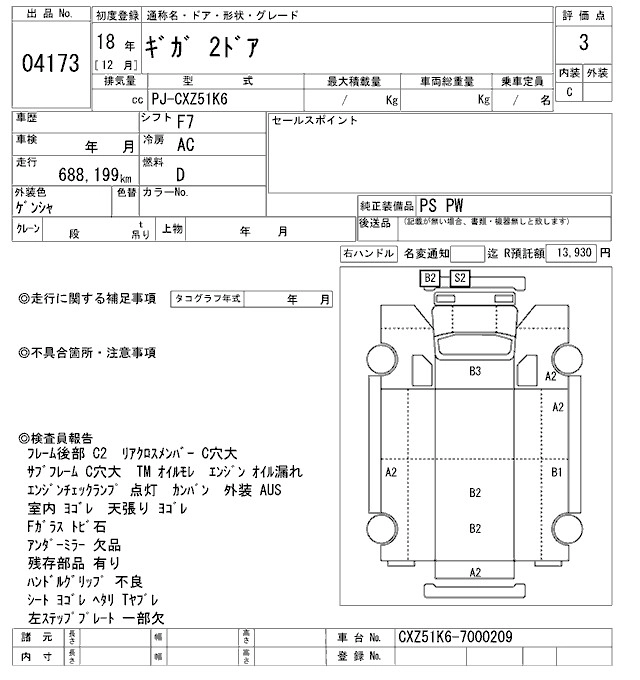 Статус выставлен на аукцион Лот 4173 Аукцион ARAI Oyama VT Дата аукциона 31.01.2026
