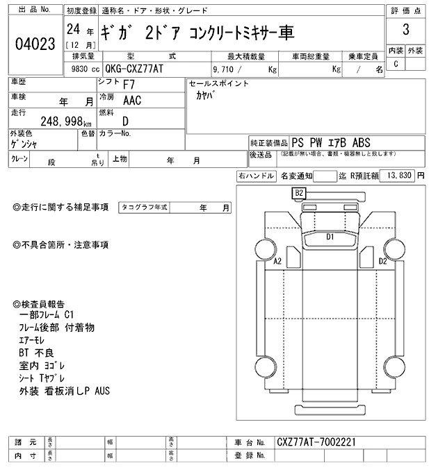 Год выпуска2012 Пробег 249 000 км КузовCXZ77AT Комплектация MIXER