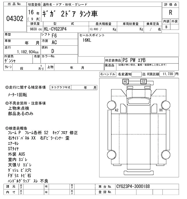 Год выпуска2004 Пробег 1 183 000 км КузовCYG23P4 Комплектация TANKER